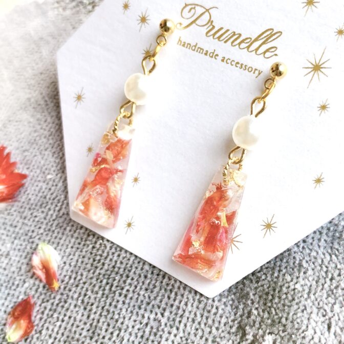光沢感のある花びらをレジンでギュッと閉じ込めました。